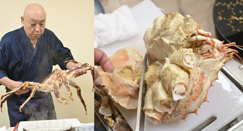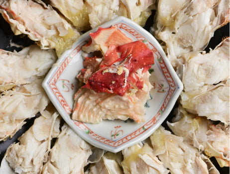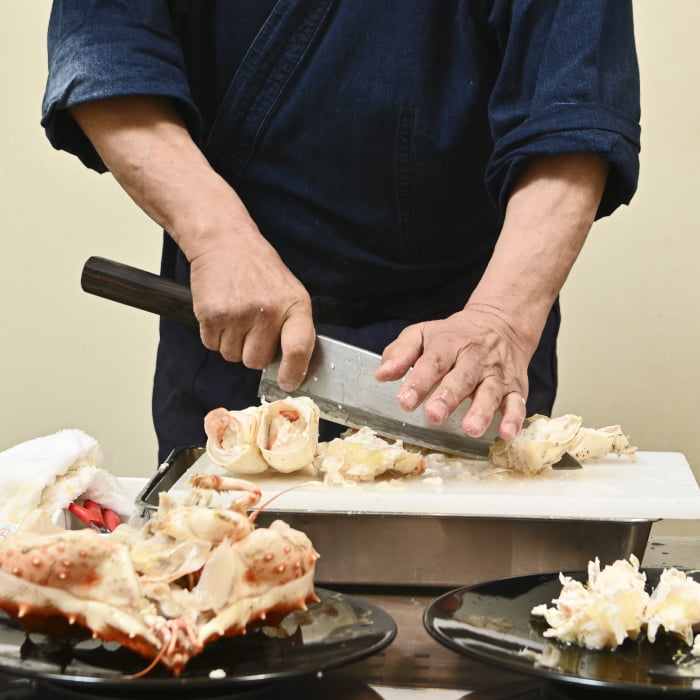 生きたカニをお客様の目の前で丁寧に捌き、そのまま最高の鮮度でご提供します。素材本来の旨みを余すことなく味わえる、格別のひとときをお楽しみください。